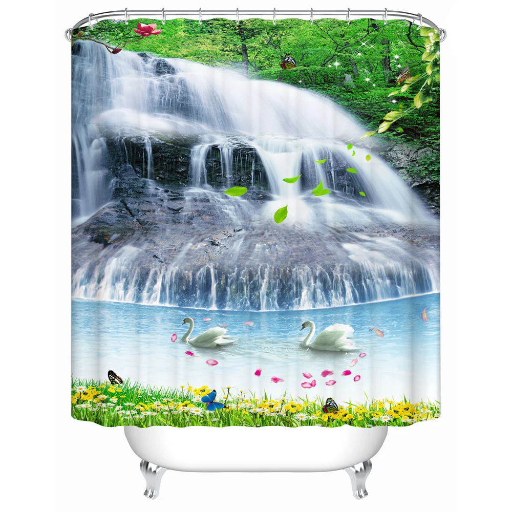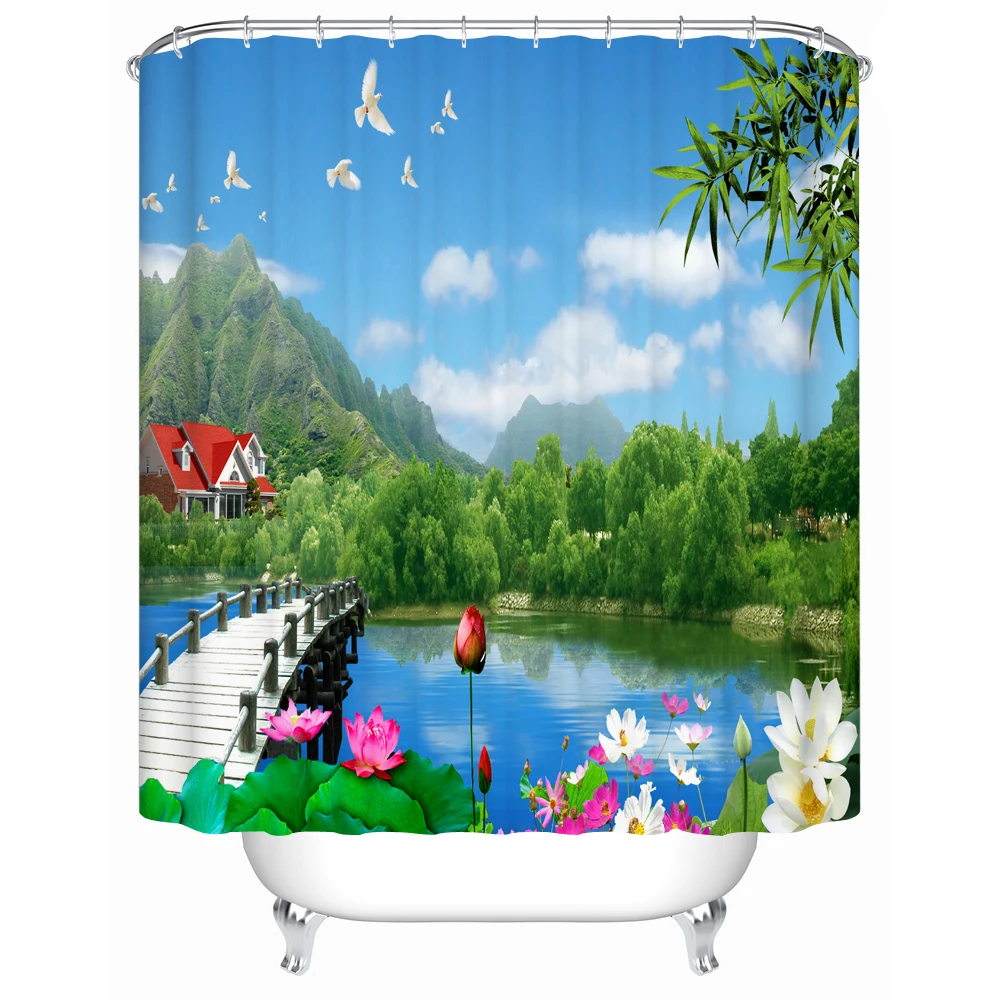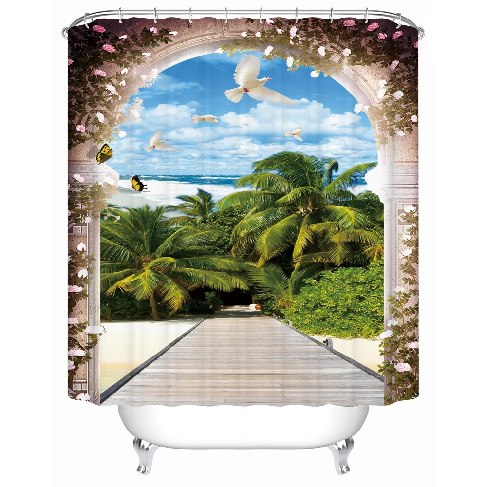 3d Fabricf Shower Curtain with Window Scenery Waterproof Polyester Bathroom Curtain for Decor Modern Home Accessary