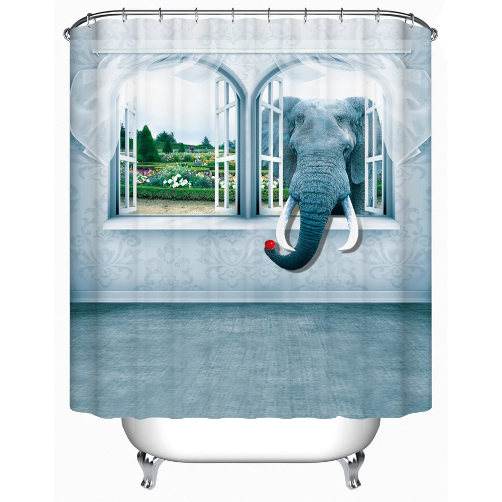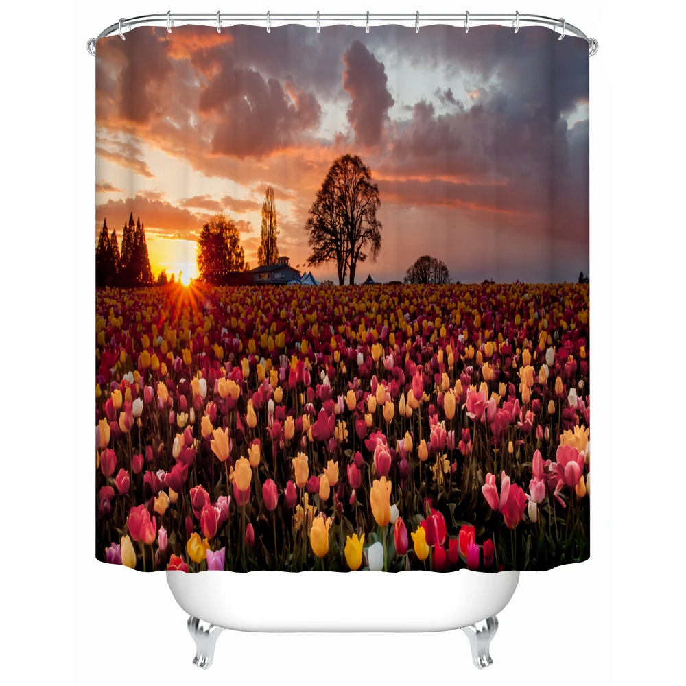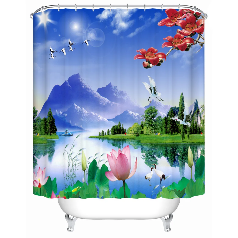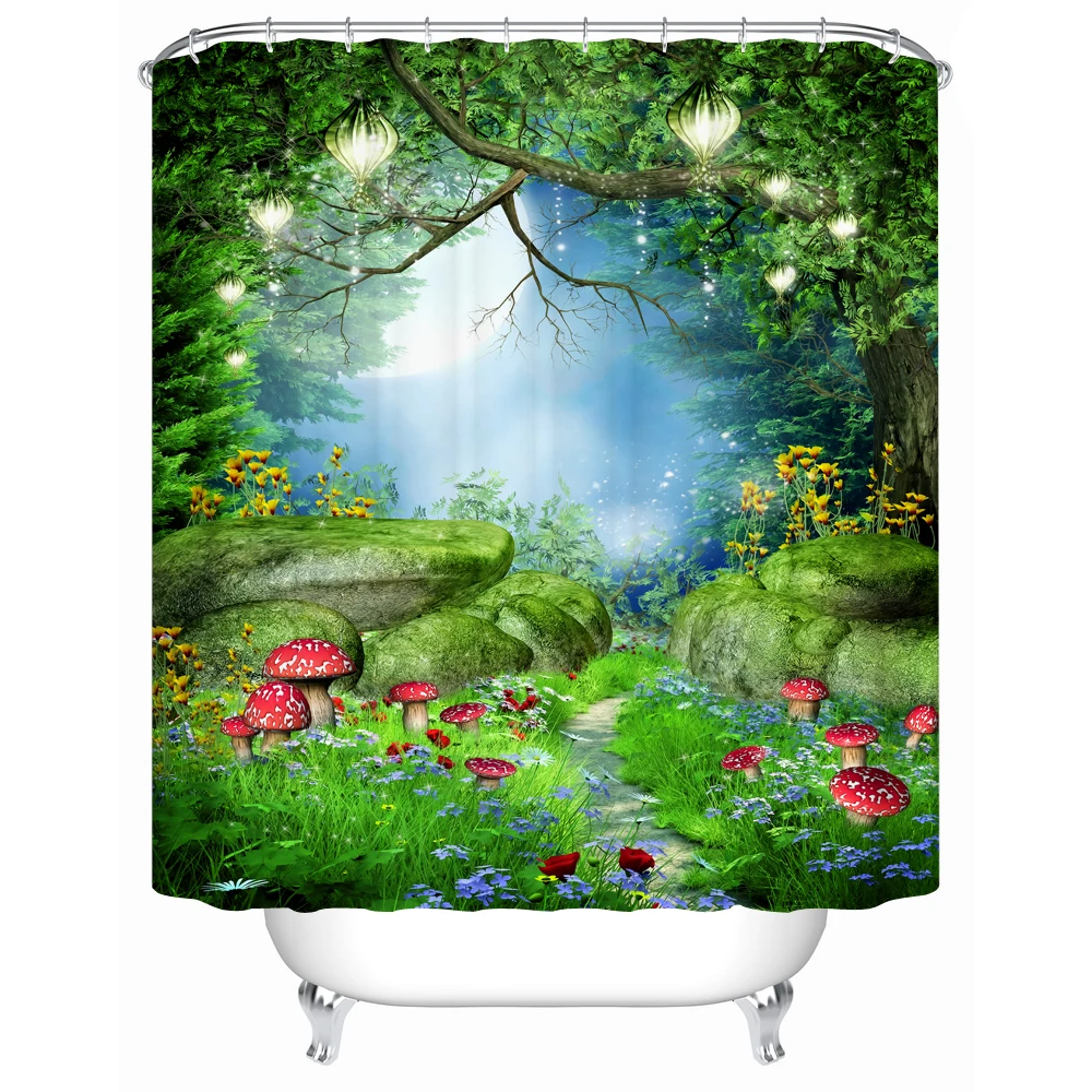3d Fabricf Shower Curtain with Window Scenery Waterproof Polyester Bathroom Curtain for Decor Modern Home Accessary