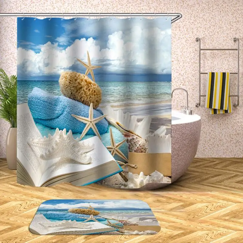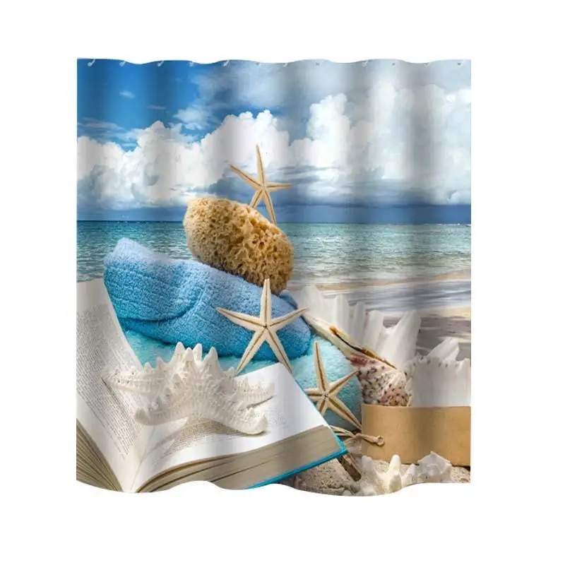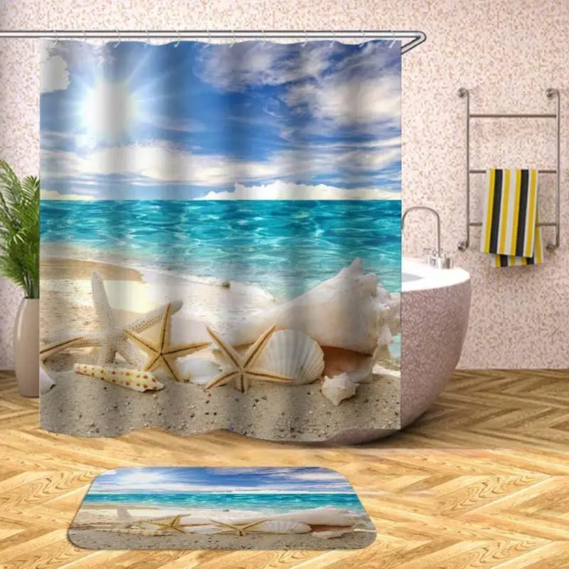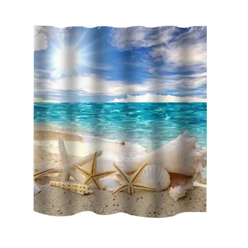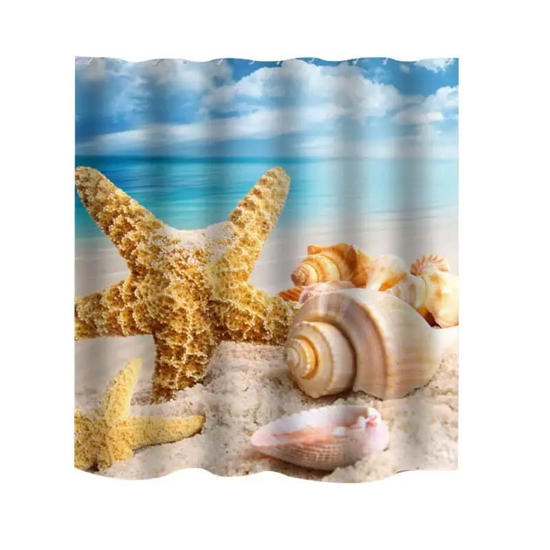 3D Print Bathroom Curtains For Bathroom Beach Polyester Waterproof Shell Starfish Shower Curtain Bath Curtain Bathroom F