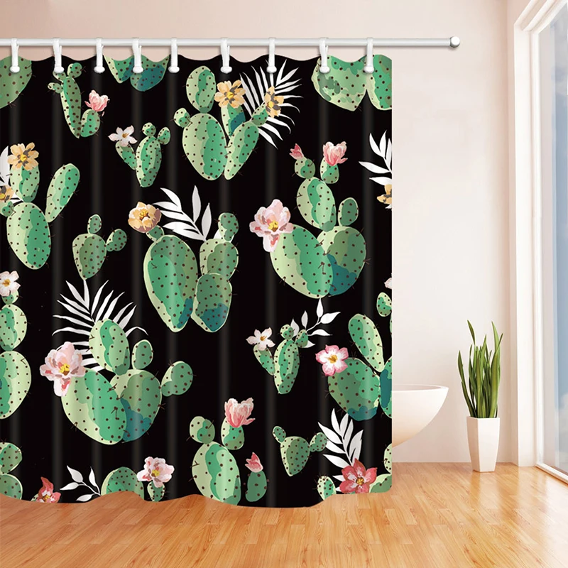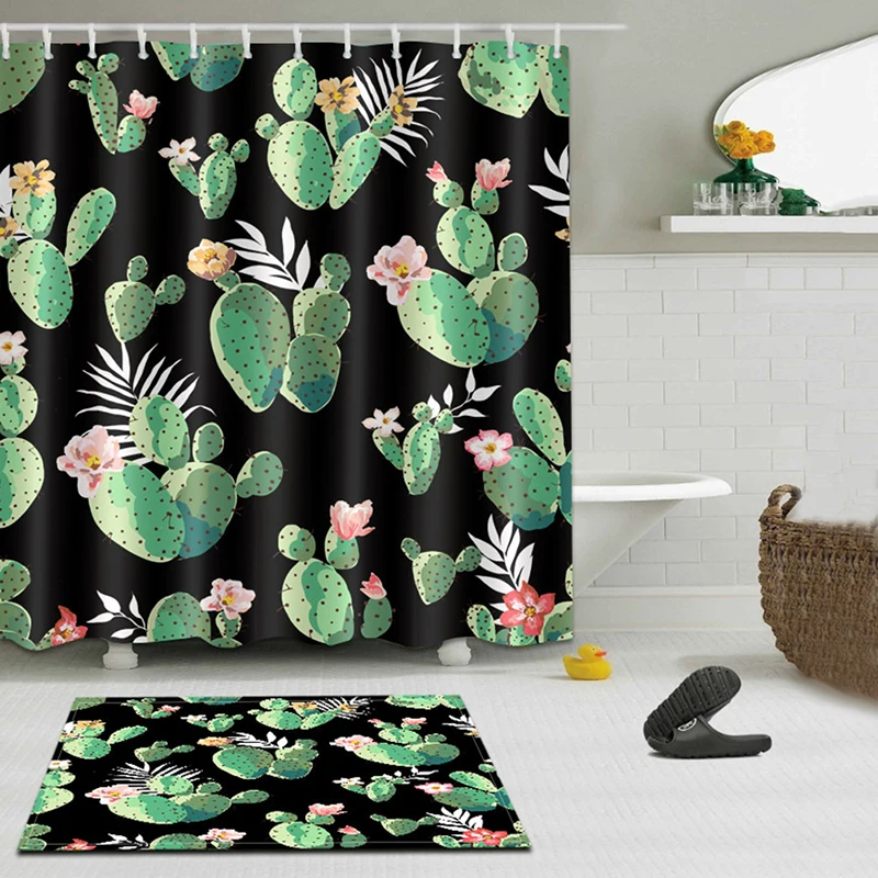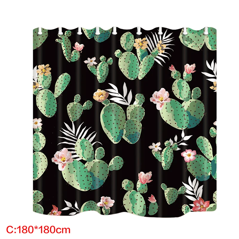 Fabric Polyester 3D Cactus Printed Waterproof Shower Curtain Tropical Plants Printing Custom Curtain For Bathroom