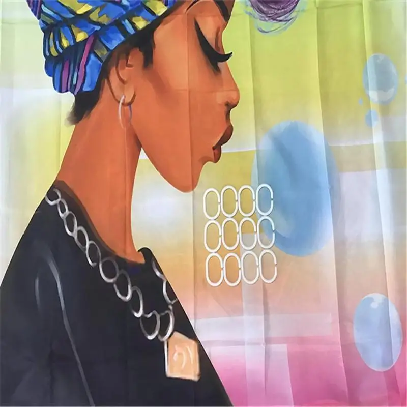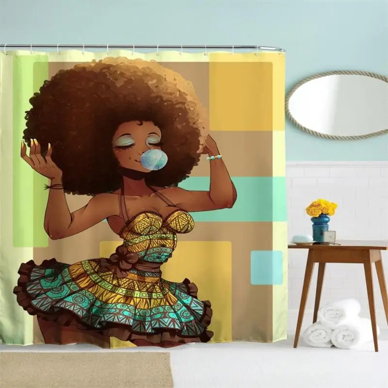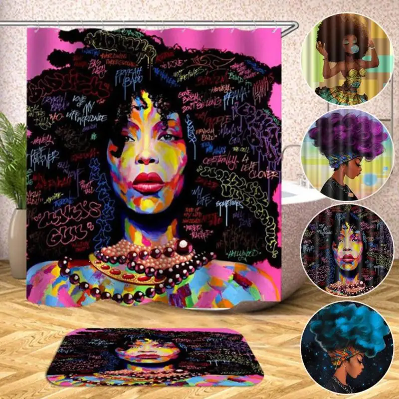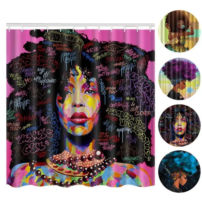 African Woman with Purple Afro Hair Shower Curtain Polyester Fabric Printing Bathroom Curtain Waterproof Bathroom Product Curtain Home