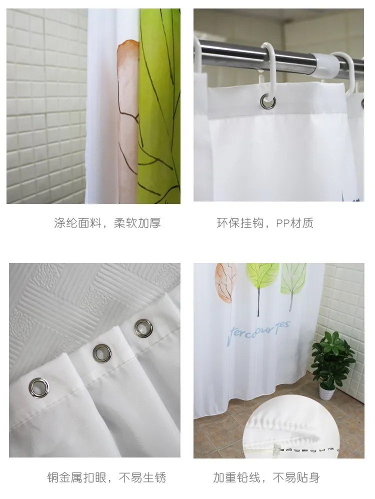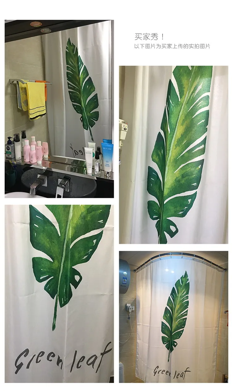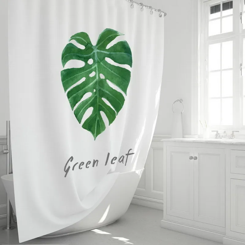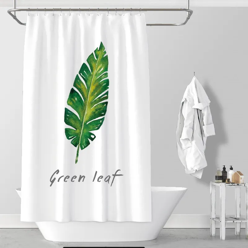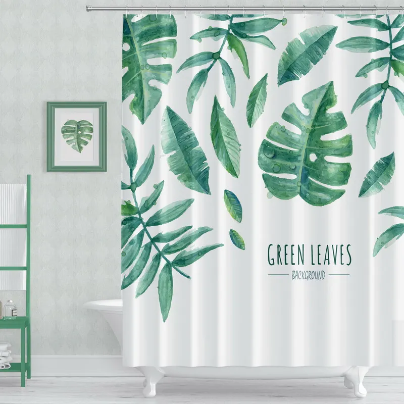 Green Plant Leaves Shower Curtains Waterproof Nordic Modern INS Bath Curtains for Bathroom Cortina with 12pcs Hooks