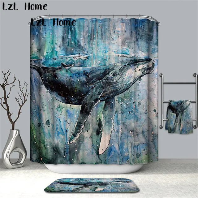 LzL Home Full of Artistic Pattern Shower Curtains Digital Printing Polyester Bathroom Curtains Waterproof Mildewproof Curtains