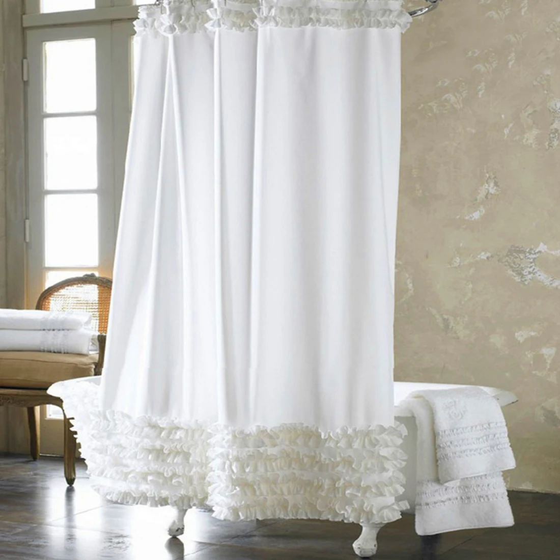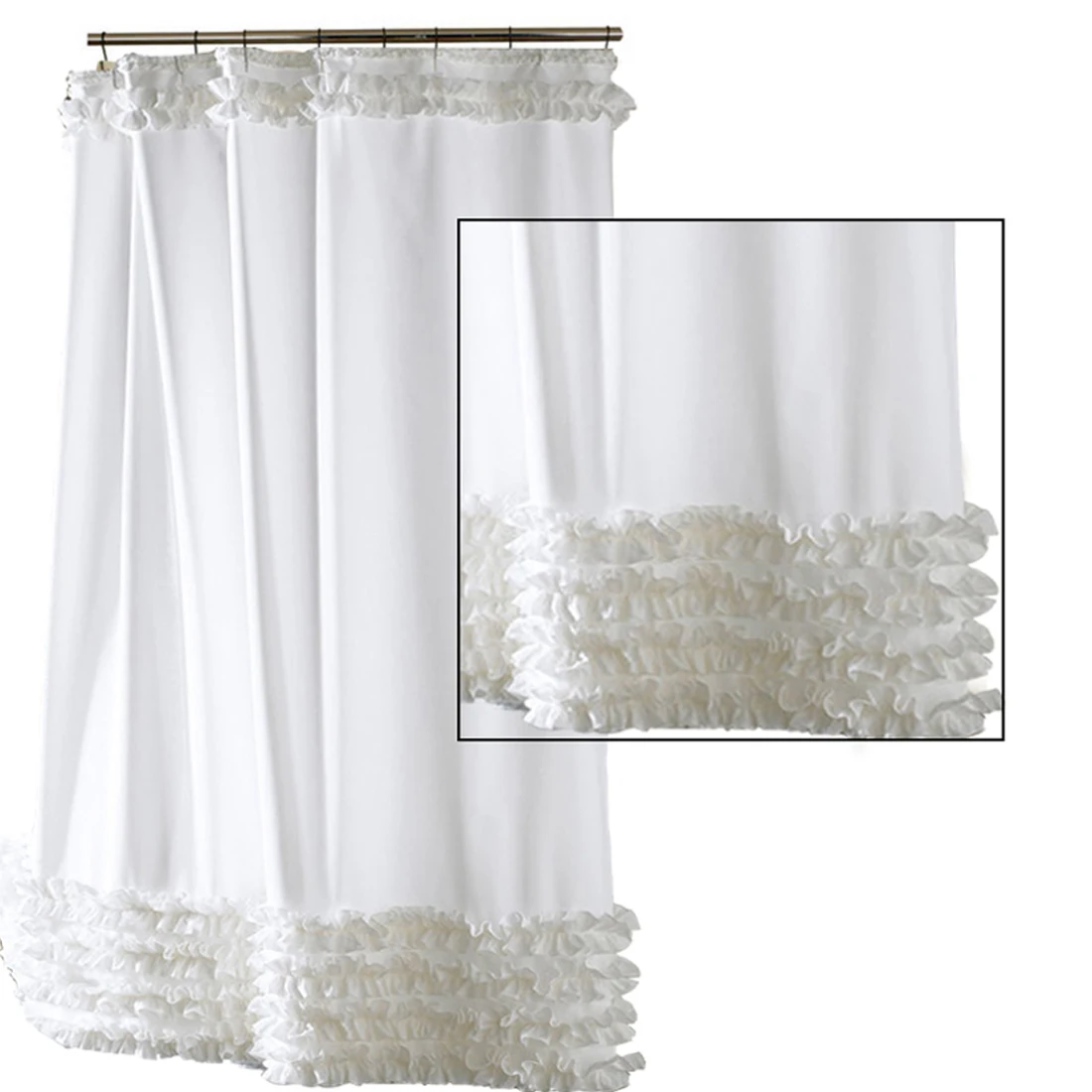 Promotions Home Decoration Bathroom Shower Curtain Waterproof Solid Polyester Fabric Lace Bath Curtain Elegant Cortina +12 Hooks