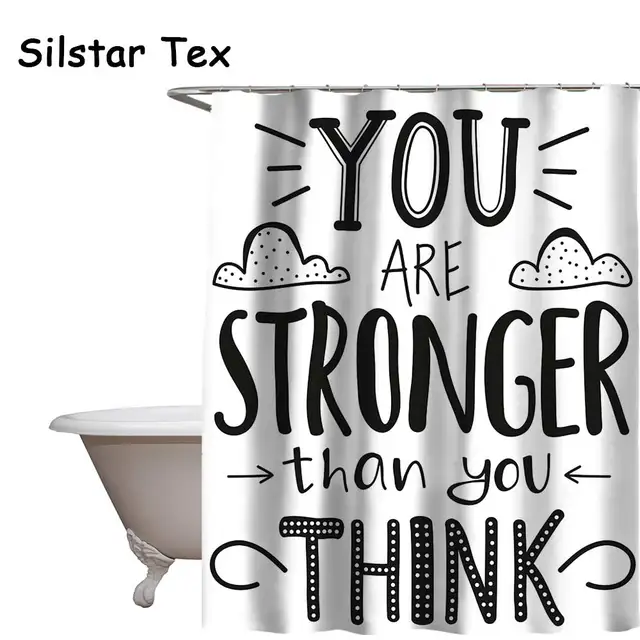 Silstar Tex Modern English Letters Bath Waterproof Shower Curtain With 12 Hooks Polyester Fabric For Eco-Friendly Bathroom Decor