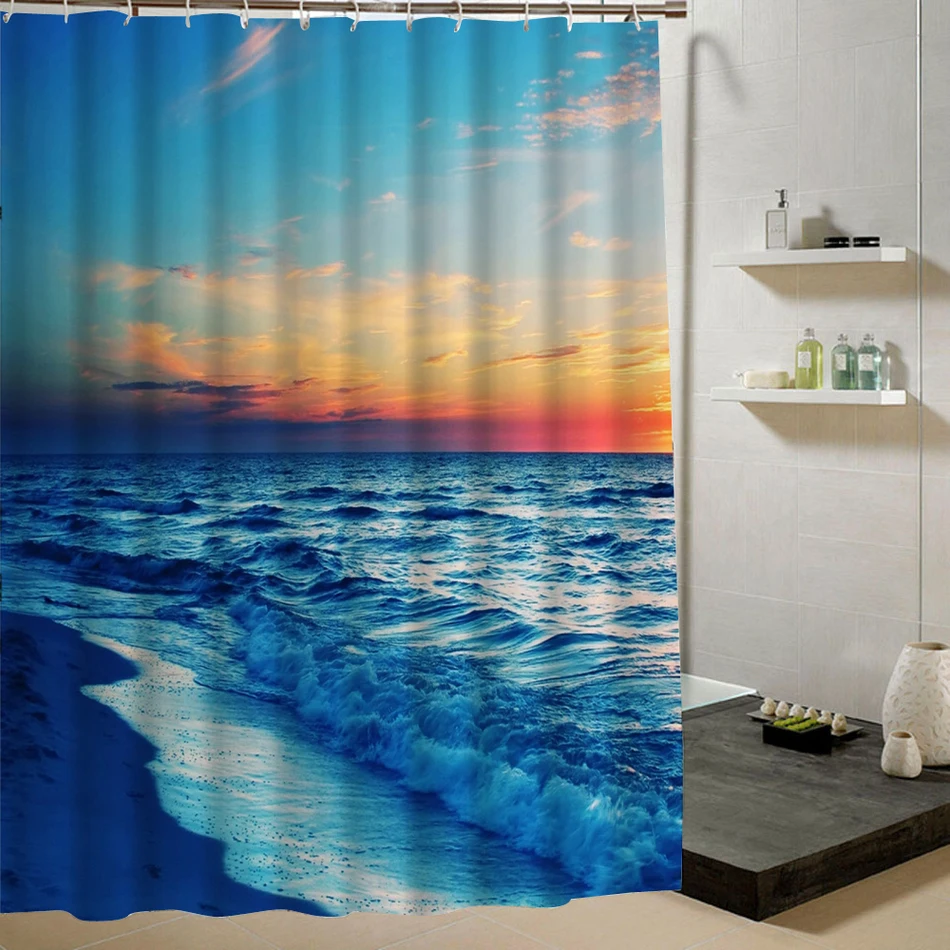 Summer Fresh Beach Shower Curtain Blue Sky Pattern 3d Print Curtain for Bathroom Decor Product Bathroom Curtain Liner Drape